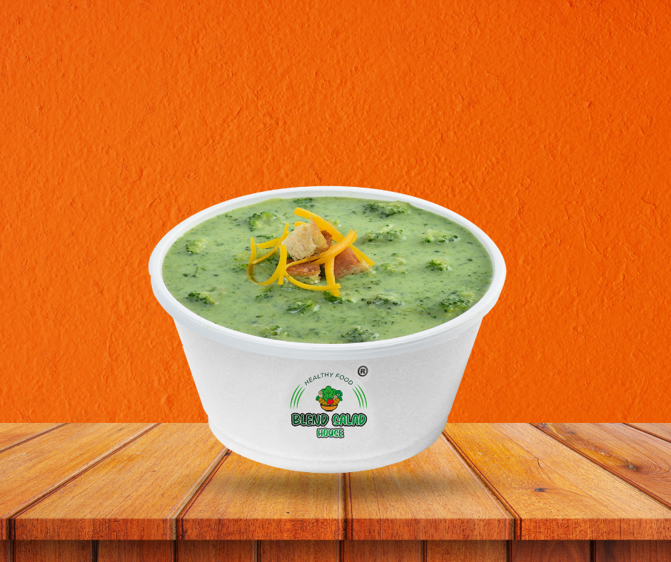 Crema de brócoli natural con leche entera, acompañada de crotones.