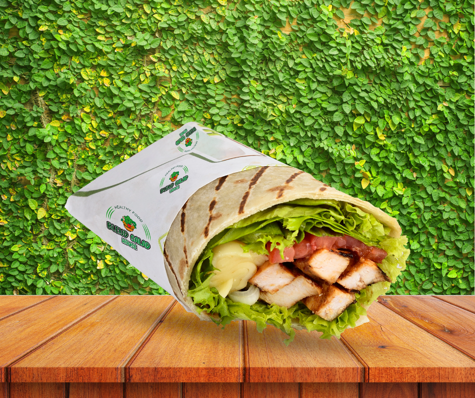 Tortilla Wrap harina, jamón de pavo a la parrilla, queso manchego cebolla, tomate y lechuga.